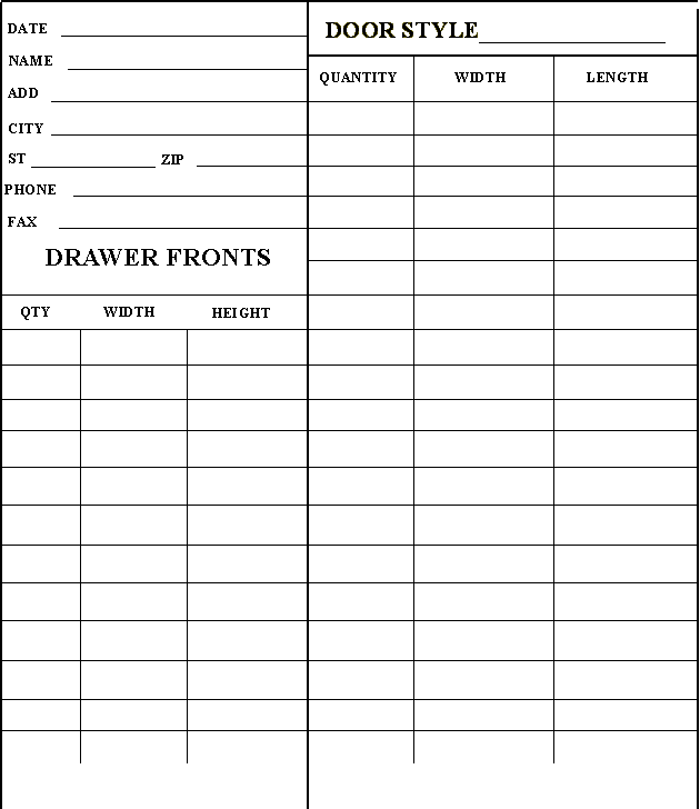 If you would like to Order Doors Please fill out Form And Email Or Fax To Office All types of wood (ash,oak, maple, cherry, knotty pine and paint grade ect,) No minimum charge on small doors and drawer fronts no upcharge for special sizes made-to-order manufacturing, ensuring your order is complete a 48 hr. replacement policy for warranty and in-transit damage Handcrafted raised panel and flat panel doors Value-priced Built to order from quality kiln dried hardwood or pine.
